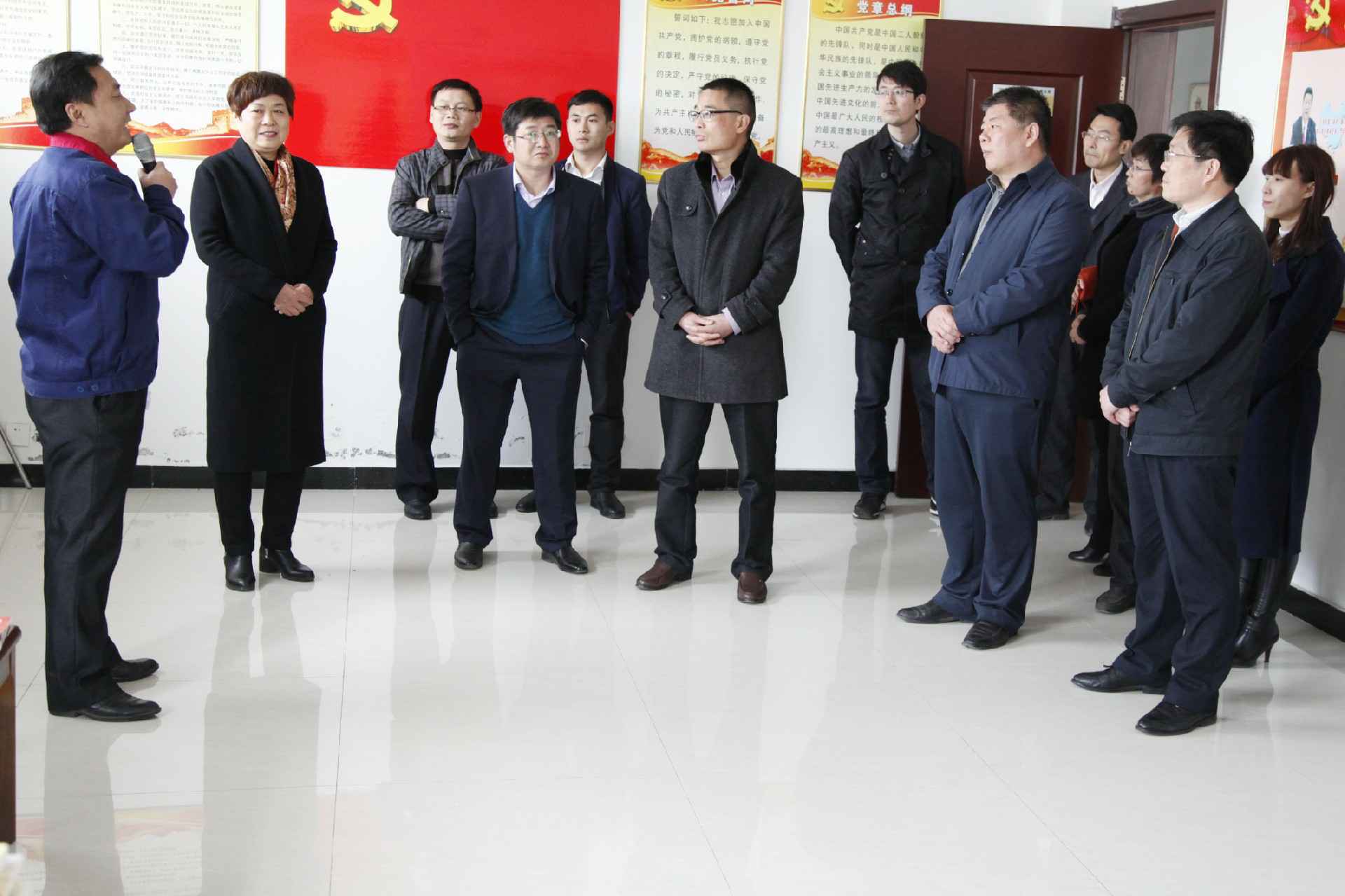 3月23日,市中区组织部宋部长带领市中区各部门街道党委负责人来公司现场观摩企业基层党建示范点工作,公司董事长颜廷英代表汇报公司“双飘双提”的发展理念,通过党旗飘扬和文化飘香两方面引领促使公司干部员工提振企业发展,从而提升企业效率,党建引领企业发展工作受到各级领导好评。